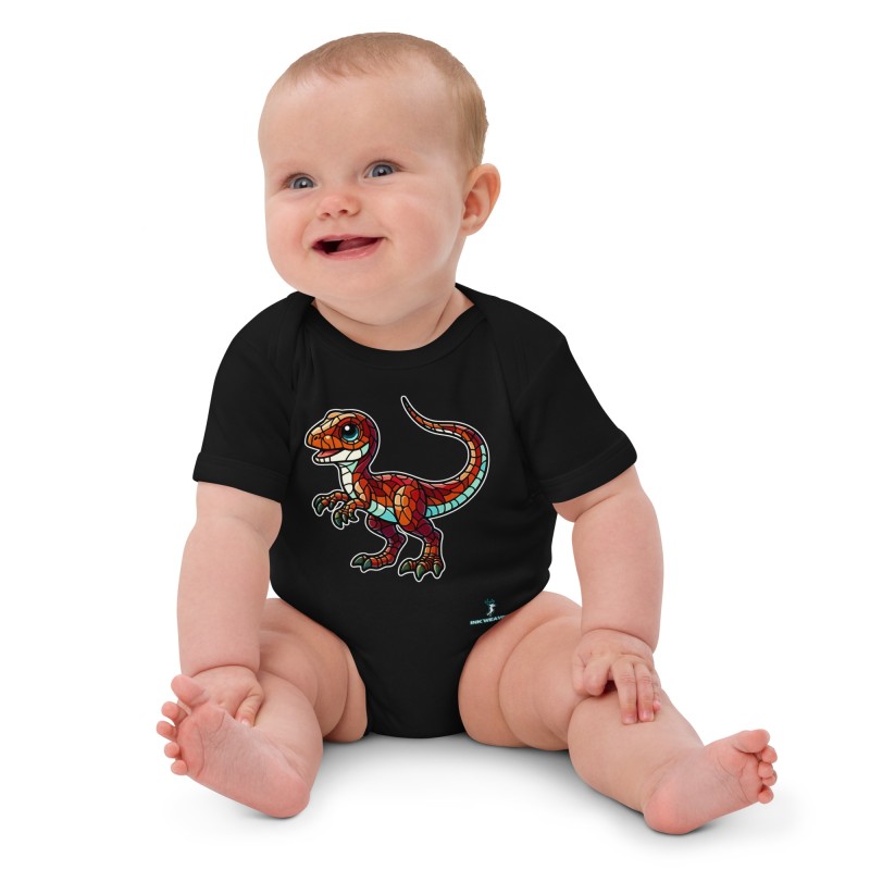 Découvrez notre adorable body bébé "Baby Veloci" avec un vélociraptor coloré et ludique, parfait pour votre petit explorateur. Fabriqué en coton bio 100%, ce body allie confort et style avec un motif de dinosaure unique qui fera fondre tous les cœurs. Idéal comme cadeau ou pour ajouter une touche de mignonnerie au quotidien de votre bébé. Disponible en plusieurs tailles.