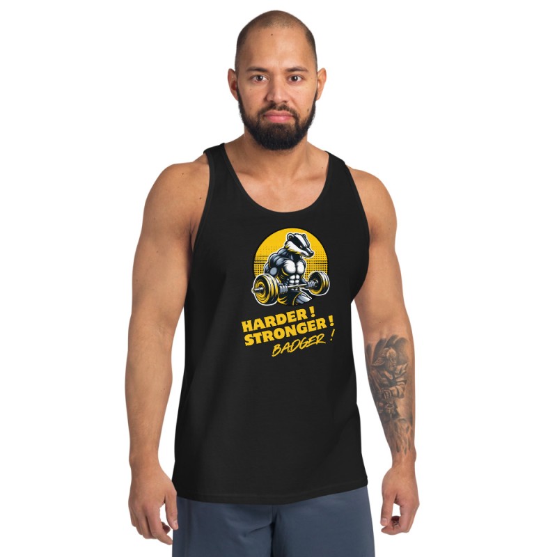 Le débardeur "Badger Stronger" est parfait pour ceux qui s’identifient à l’esprit tenace du blaireau. Conçu pour les athlètes cherchant à révéler leur force intérieure, ce modèle est fait pour résister à vos séances d’entraînement les plus intenses. Léger et respirant, il offre un confort optimal pour tous vos mouvements.