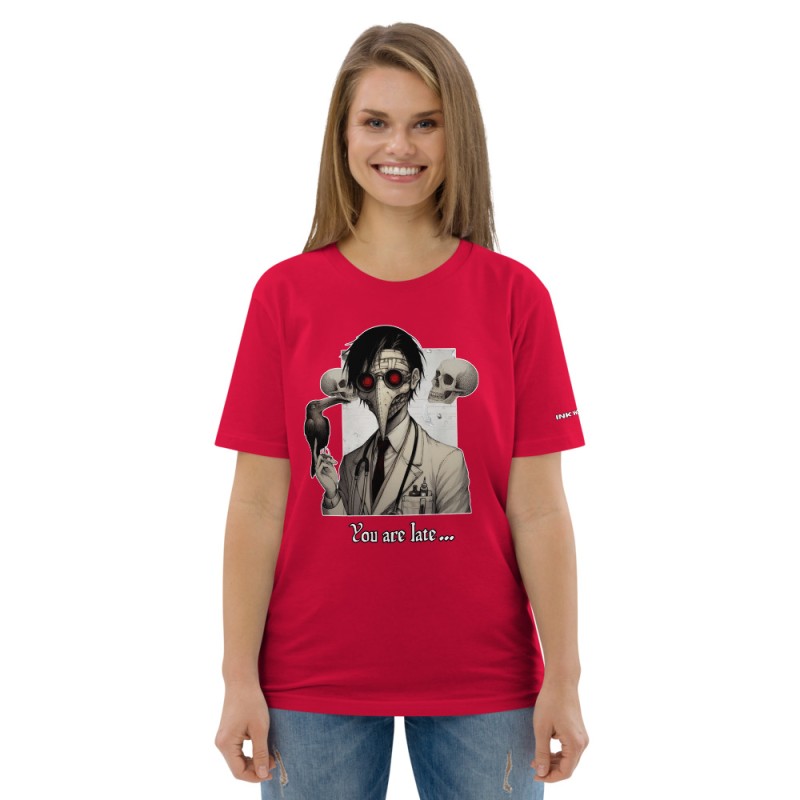 Le t-shirt "You are late" s’inspire de l’autorité impitoyable des médecins de la peste. En retard à votre rendez-vous, vous devrez payer ce décalage par une douleur infligée sans merci. Ce design original et décalé apporte une touche sombre et ironique à votre style. Fabriqué en coton doux, ce t-shirt est aussi confortable que percutant.