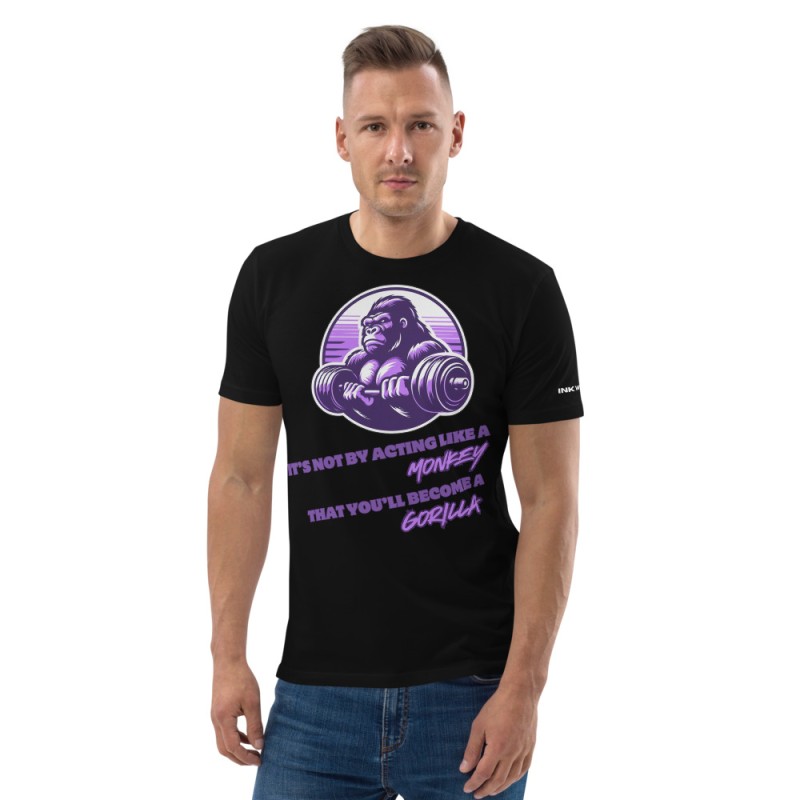 Boostez vos entraînements avec le t-shirt "Gorilla Becoming". Inspiré par la puissance du gorille, il offre confort et style. Disponible en plusieurs tailles et coloris.